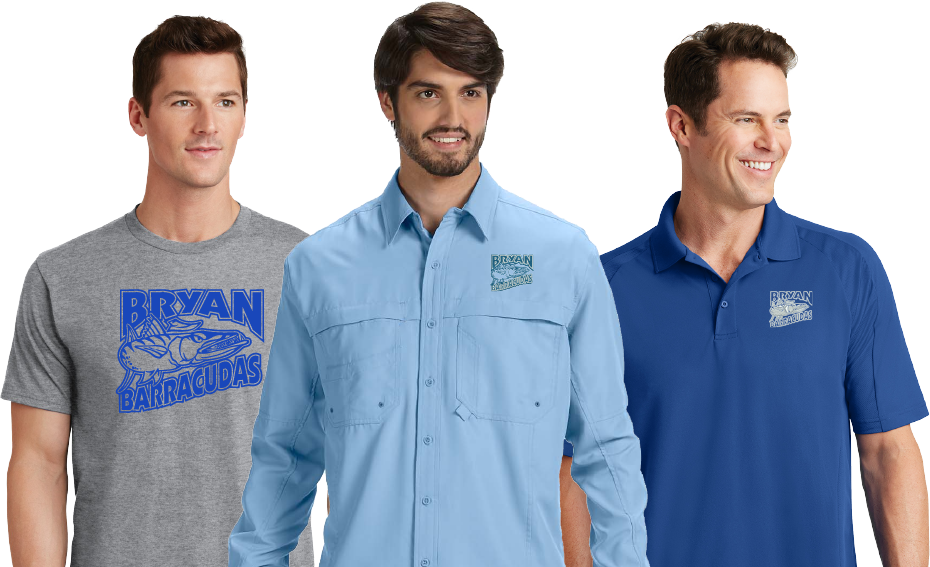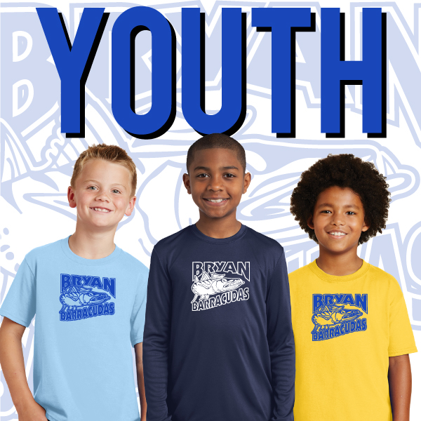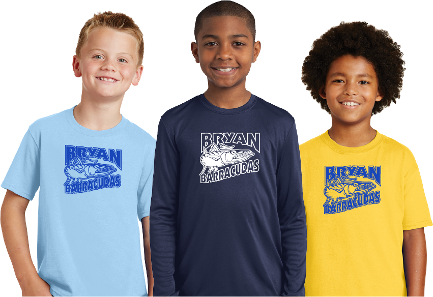 The Bryan Barracudas store was created for the parents, swimmers, and fans of the Bryan Barracudas Swim Team. It was designed to provide you with a quick and efficient system to order a variety of custom apparel items for swim meets, special events, and every day life.